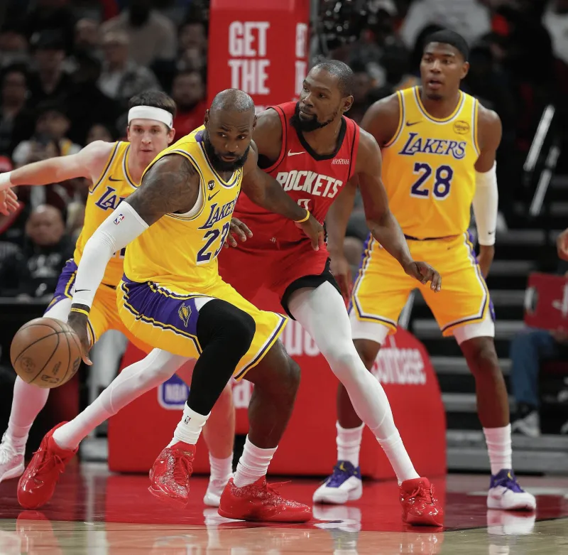 惺惺相惜,湖人官方分享詹姆斯与KD赛场对位的精彩瞬间