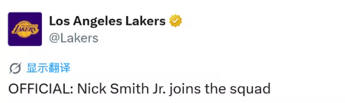 北京时间4月12日,据名记Shams报道,Klutch Sports经纪人卢卡斯-牛顿向ESPN透露,湖人将与双向合同后卫小尼克-史密斯签下两年新合同。随后,湖人官方宣布签约。