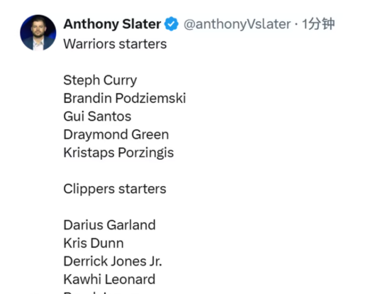北京时间4月16日上午10点,勇士附加赛对阵快船,双方公布首发名单。