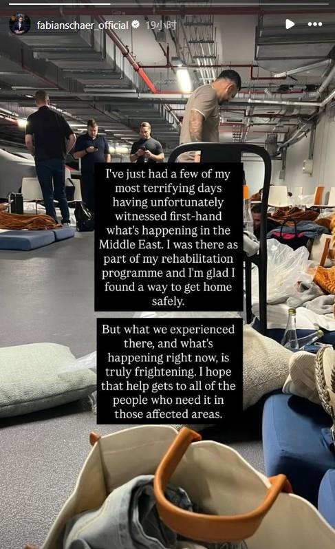 3月4日,纽卡后卫法比安-舍尔通过社交媒体透露了自己在中东养伤期间的恐怖经历,并确认自己已安全抵达英国。