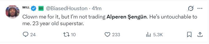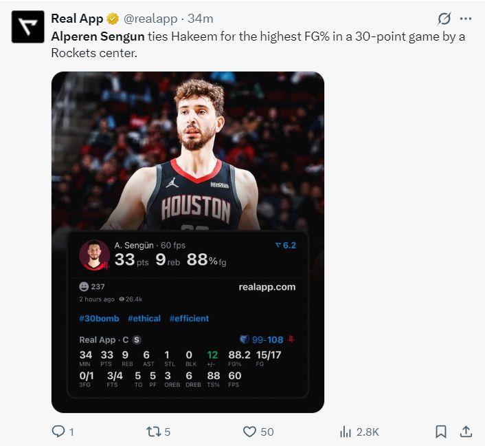申京17中15表现引热议,创四项纪录比肩大梦,联盟前五中锋,火箭队非卖品