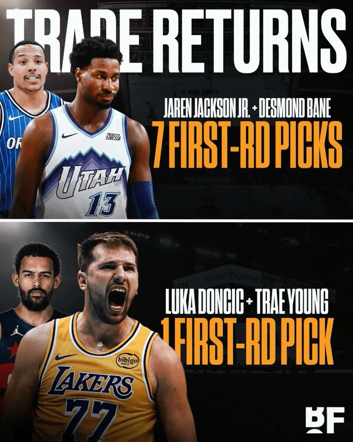 美媒报道,东契奇和杨仅换来1个首轮,而小贾伦贝恩却能换7个