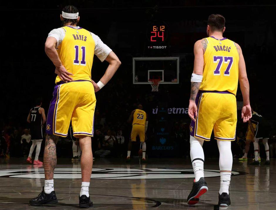 湖人:詹姆斯25分7助攻3抢断,东契奇24分6篮板5助攻,拉拉维亚18分5篮板,里夫斯15分,海斯9分,布朗尼4分。