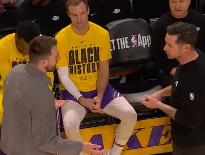 焦点体育02月13日讯,湖人和独行侠的比赛正在进行。雷迪克问东契奇关于夹克款式的事,东契奇回应说自己对时尚感不太在行。