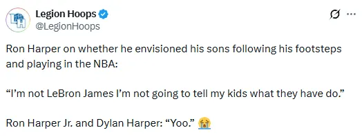 焦点体育02月15日讯 今天,全明星赛期间,马刺球员迪伦-哈珀的父亲接受了媒体采访。谈起是否希望儿子继承他的道路进军NBA时,他表示,从没直接告诉孩子该怎么做。