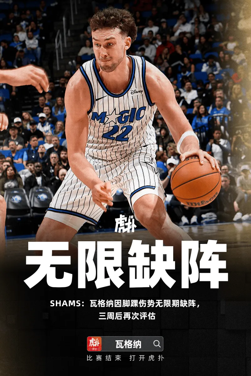 据消息人士透露,近期的检查结果显示,瓦格纳此前遭遇的左脚踝高位扭伤仍伴有酸痛感,需要额外的康复与治疗时间。因此,瓦格纳目前将处于无限期休战状态,魔术队计划在三周后对他的恢复进度进行重新评估。