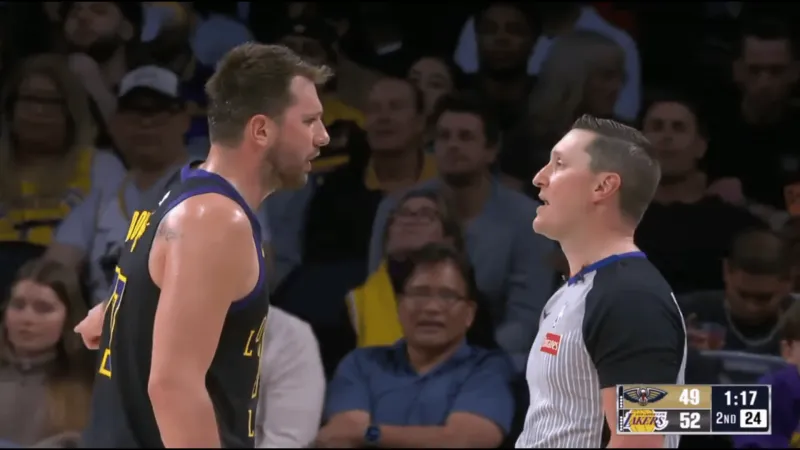 湖人打鹈鹕这场,东契奇跟裁判较上劲了,哨子响没响他都要念叨几句。