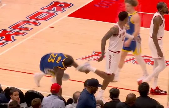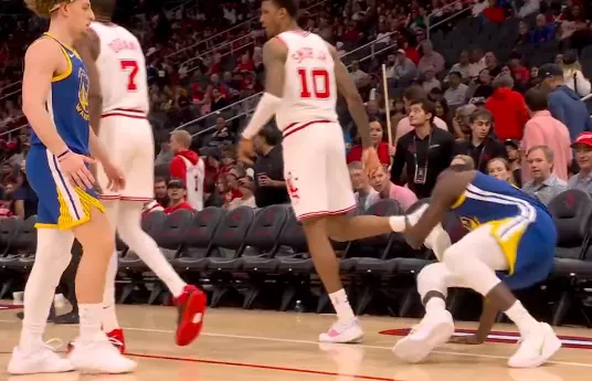 焦点体育03月06日讯,在火箭主场对阵勇士的常规赛中,格林起身时勾住史密斯脚踝,裁判回看后判定为技术犯规,比赛因此出现小插曲。