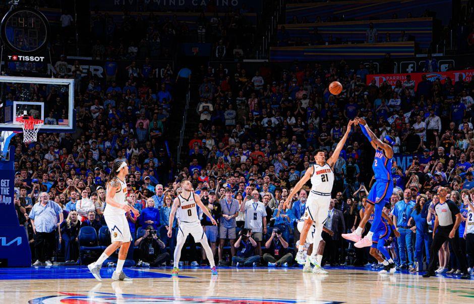 SGA在终场前2.5秒命中了准绝杀的三分球,最终雷霆在本赛季完成了对掘金的三杀!雷霆稳居联盟第一,而掘金排在西部第六,掘金跟湖人的胜场已经拉开0.5个,这场比赛影响了整个西部的格局。最关键的一次防守阿德尔曼还换下了约基奇与穆雷。