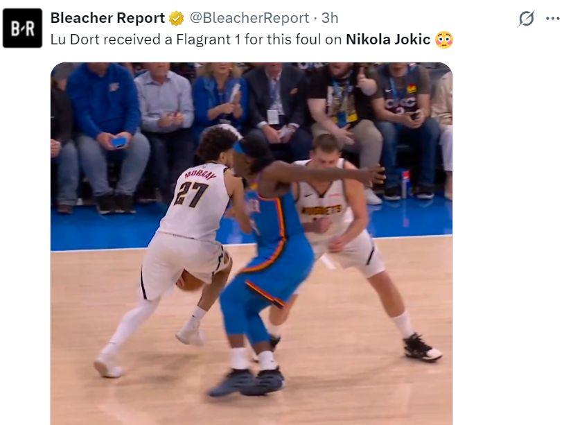 但这场失利尼古拉-约基奇绝对不该背锅,他在终场前1分12秒刚刚被多尔特的横臂击中面门,约基奇的鼻梁被多尔特手臂击中,约老师倒地不起,裁判给了多尔特一级恶意犯规。