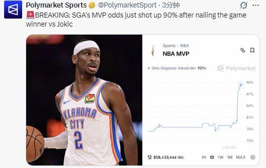 北京时间3月10日,雷霆129-126拿下掘金,亚历山大命中了一记准绝杀三分。这场球可太关键了,因为约基奇是他争夺MVP最有力的对手。现在来看,MVP的归属差不多就定了,美媒那边也觉得悬念基本没了。最新的数据显示,亚历山大蝉联MVP的概率已经冲到了90%。