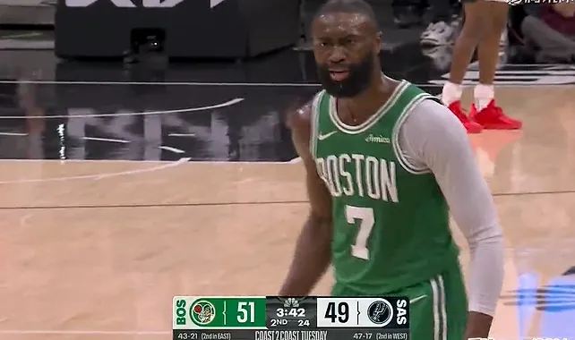 焦点体育3月11号消息,今儿个NBA常规赛,马刺对上凯尔特人,绿军那边的杰伦·布朗可真是急眼了,连着被吹了两个技术犯规,直接给罚出去了。