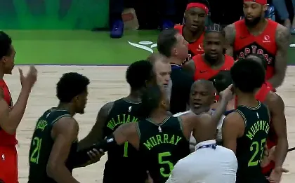 比赛的第四节,默里晃倒谢德急停三分命中挑衅对手吃T,双方爆发冲突。