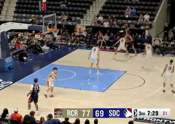 焦点体育03月13日讯,今天NBA G联赛,混音之城对上圣地亚哥快船那场球,打得正热闹。 杨瀚森在场上真是抢眼,篮板球点抢那几下太厉害了,最后拿了12分10篮板,两双数据稳稳到手。