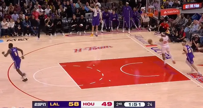 湖人对火箭的比赛中,里夫斯和詹姆斯联手打出一波快攻,成功上演空篮得分,成为场上精彩瞬间之一。