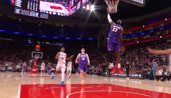 湖人抢断快攻,詹姆斯远距离单臂砸扣上演