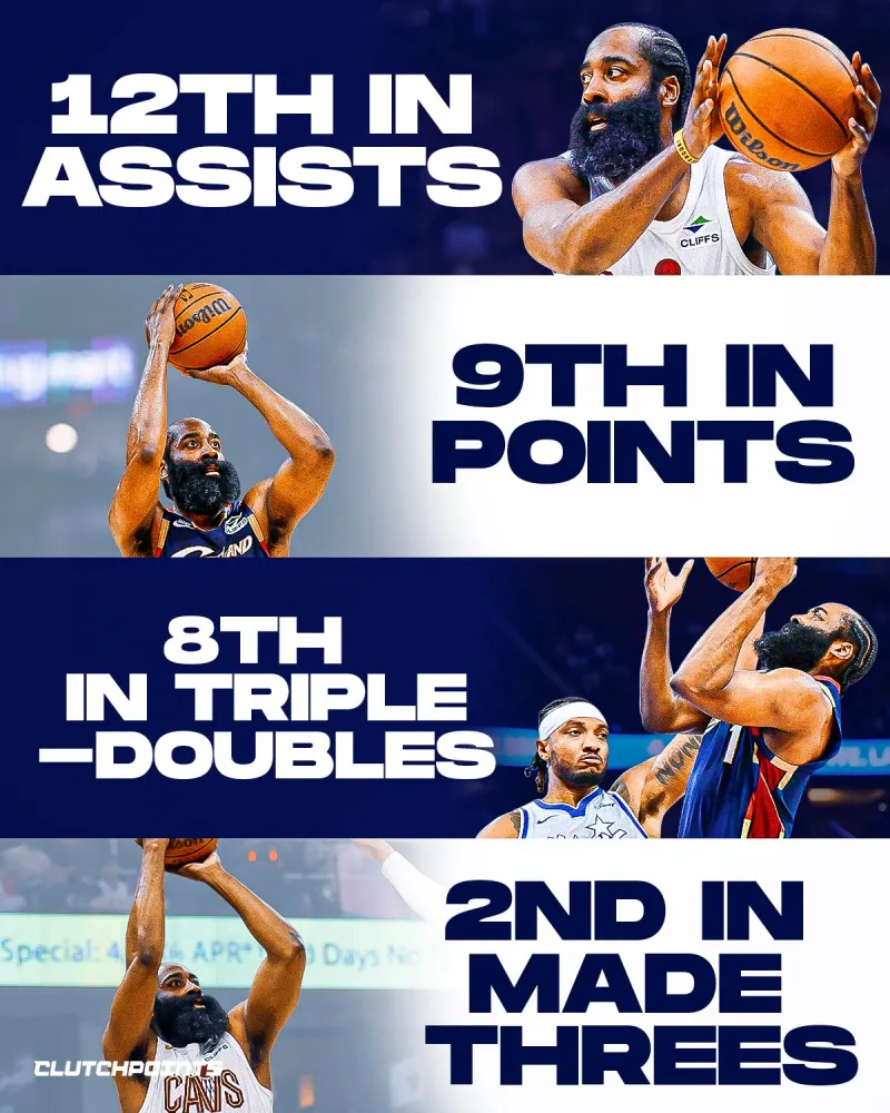 赛后,美国篮球媒体ClutchPoints更新社媒:“哈登的数据简直令人难以置信,然而,围绕他的讨论却似乎远比应有的平静。我们亲眼见证了他的蜕变:从雷霆的第六人,到MVP,再到联盟历史上最势不可挡的单打得分手之一。如今,在他职业生涯的后期,他的助攻数位列历史前12,得分也跻身历史前10,能像他这样左右比赛走向的球员寥寥无几。”