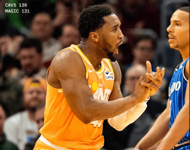本场比赛,骑士球员多诺万-米切尔出战34分钟,22投14中,其中三分球7投3中,罚球11投11中,得到42分2篮板3助攻。