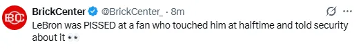 美国篮球媒体BrickCenter晒出詹姆斯今日个人动态,并配文: