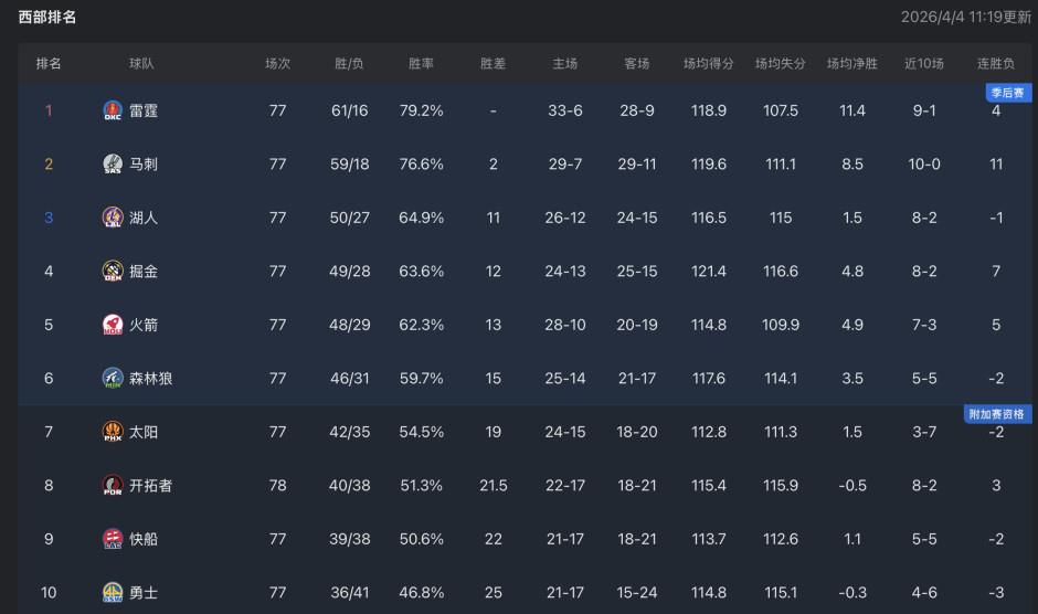 森林狼更希望看到的是湖人继续稳居西部第三或者是火箭挤掉掘金成为西部第三,这样健康的森林狼在首轮打湖人或火箭都更优。