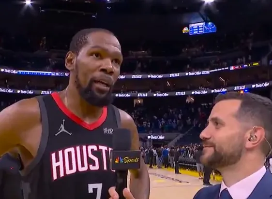 焦点体育04月06日讯,NBA常规赛,火箭117-116险胜勇士。赛后,火箭球员杜兰特表示,虽然火箭一度占据主动,但库里的回归让比赛风向突变,他的得分爆发几乎让勇士完成逆转。杜兰特觉得,这场比赛像季后赛的预演,能守住胜利让他很满意。