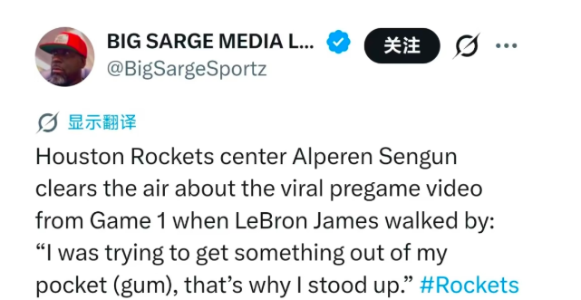 北京时间4月21日,火箭球星申京回应季后赛首轮G1赛前视频。视频中,当詹姆斯走过时,申京站起身来, seemingly 充满敬意地看向对手。