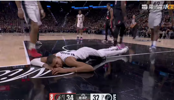 第二节比赛,文班持球,面试霍勒迪准备进攻,结果后者直接灵活闪过,文班直接失去平衡,摔倒在地,下巴因为惯性直接落地,砸到地板,随后他回到更衣室接受治疗。伤退之前,文班首发出战11分钟,投篮3中1,拿到5分4篮板1助攻。