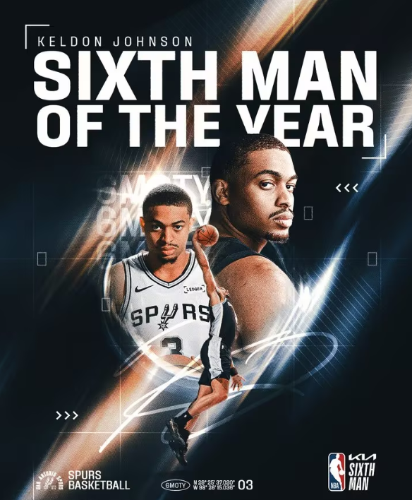 凯尔登-约翰逊当选最佳第六人!喜极而泣,马刺赛季第二项大奖
