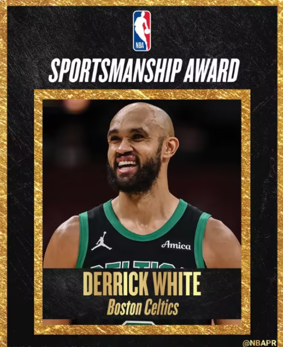 - NBA官方:凯尔特人后卫德里克-怀特荣获本赛季体育道德风尚奖
