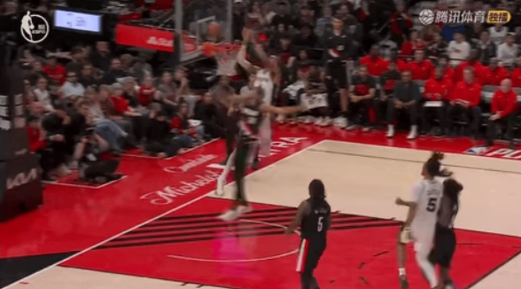 末节开打还剩11分06秒时,文班亚马连续完成两次空中接力扣篮,又在还剩9分21秒时空切扣篮得手,帮助马刺把74:74的比分拉开到80:76。