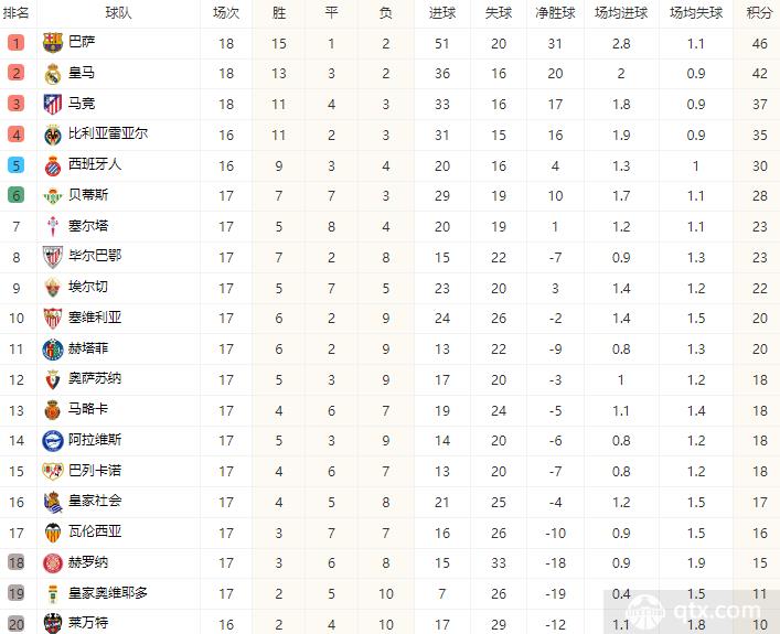 西甲积分榜:巴萨领先皇马4分,牢牢掌握争冠主动权