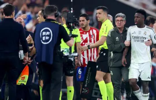 维尼修斯与西蒙尼冲突,德比战场面激烈