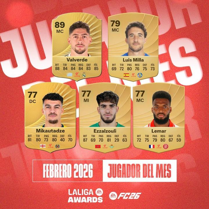 西甲公布了2月最佳球员候选名单,巴尔韦德、勒马尔、阿布德等人入选。