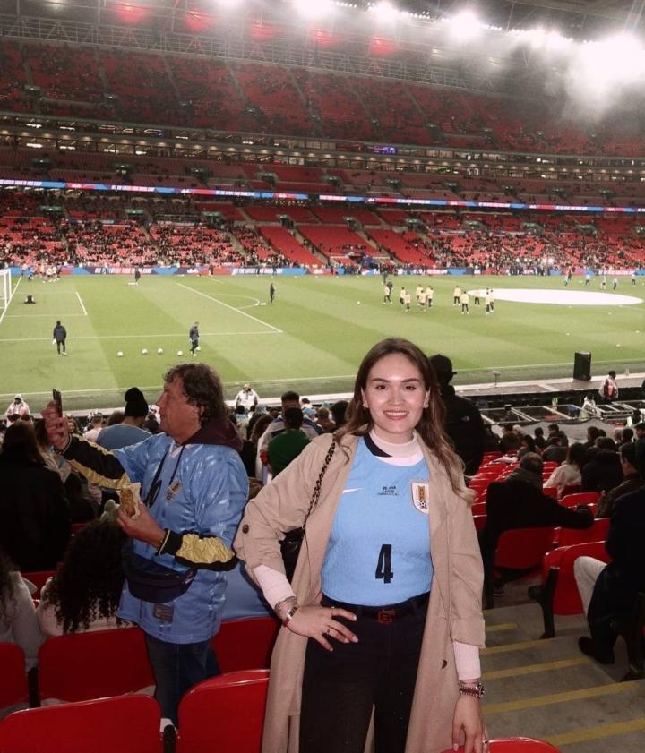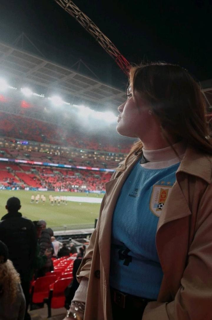 阿劳霍的妻子阿比盖尔亲自飞到伦敦,在温布利现场看了乌拉圭对英格兰那场球,还发了动态。