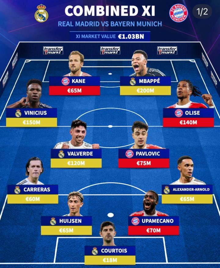 皇马拜仁联队身价榜出炉了,看看最贵十一人都有谁。