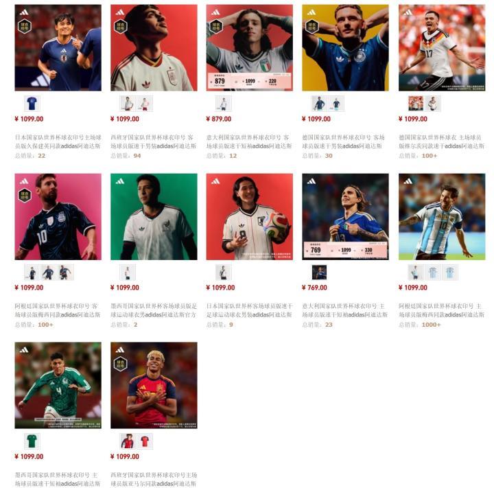 意大利队输给波黑,错失世界杯决赛圈资格后,国内某电商平台的阿迪达斯旗舰店已开始对意大利队主客场球衣进行降价销售。