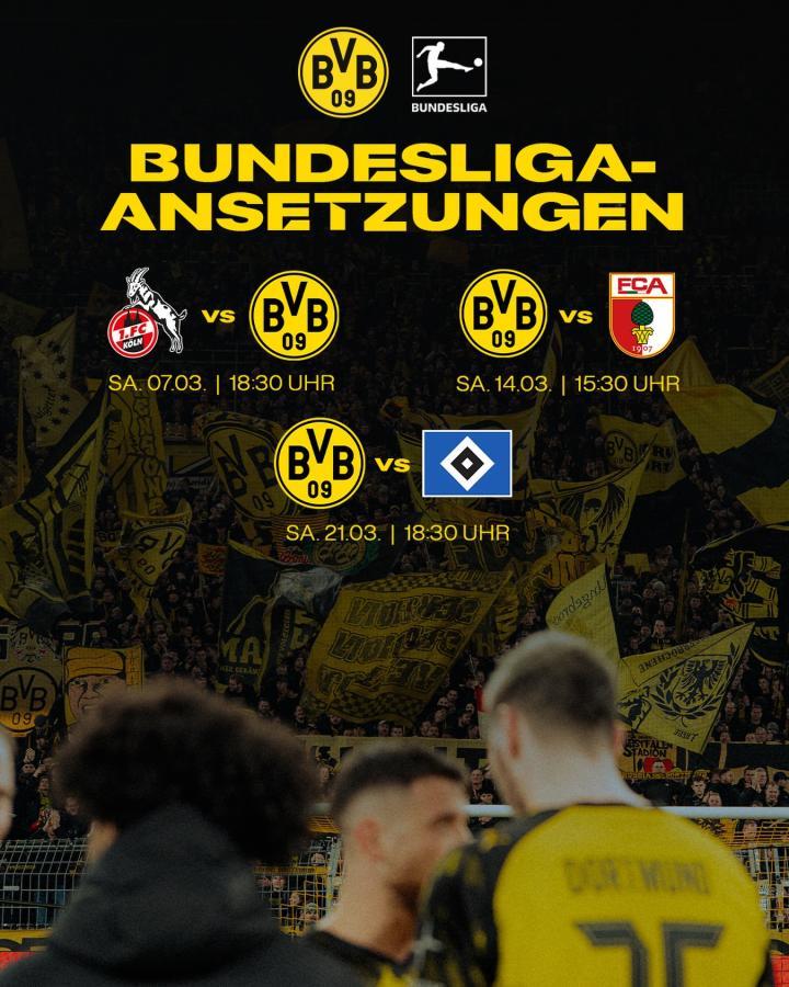 三月德甲赛程出炉,第25轮3月8日凌晨1:30对阵科隆,第26轮3月14日晚22:30迎战奥格斯堡,第27轮3月22日凌晨1:30对阵汉堡。