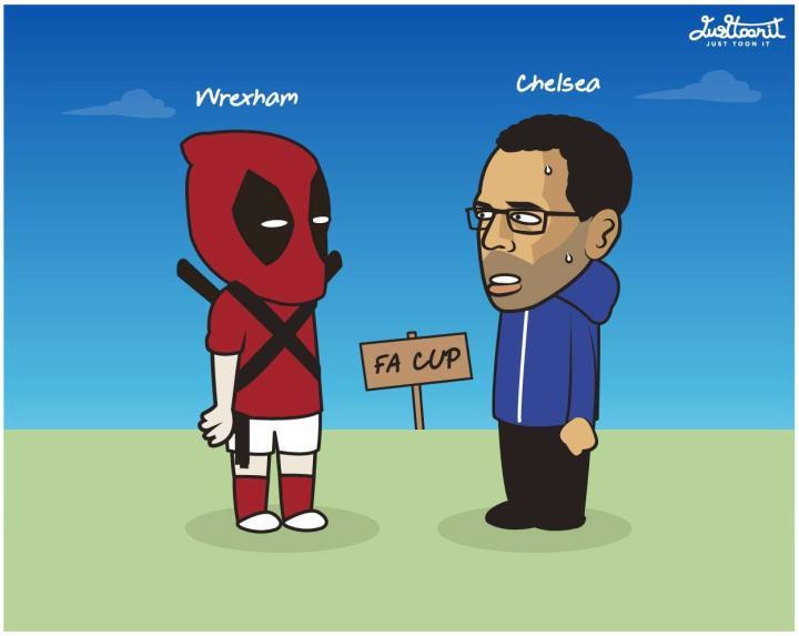 足总杯第五轮,雷克瑟姆对阵切尔西的比赛,泰国艺术家Kaew Justtoonit还特地创作了一幅漫画来展现这场对决的趣味性。