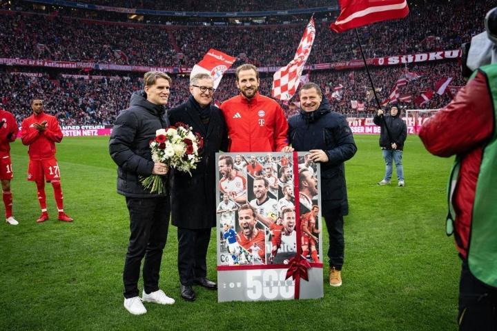 德甲第23轮,拜仁慕尼黑主场迎战法兰克福,赛前,凯恩因职业生涯收获500球里程碑,收到俱乐部赠送的纪念礼物。