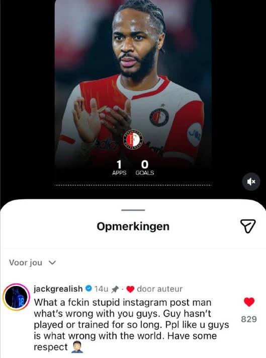 赛后,有球迷博主在社交媒体上批评斯特林表现差,接着,格拉利什在这条动态下进行了评论:“这他*是什么傻*帖子?你们到底怎么回事?他已经很长时间没踢球、没训练了,像你们这样的人,才是这个世界的问题所在,请给点尊重吧。”