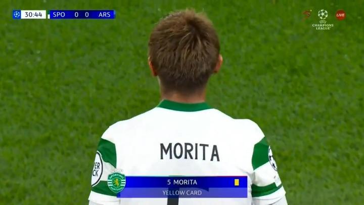 本场比赛第31分钟,守田英正铲球放倒特罗萨德,得到一张黄牌。